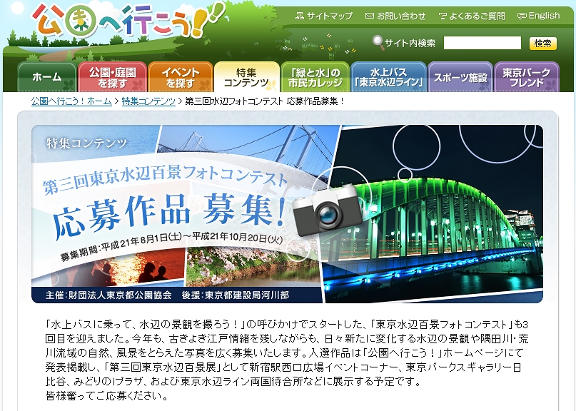 | 「東京水辺百景フォトコンテスト」 | 2009.8.31 | |