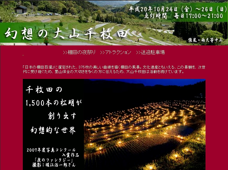 | 大山千枚田 棚田の夜祭り | 2009.9.21 | |